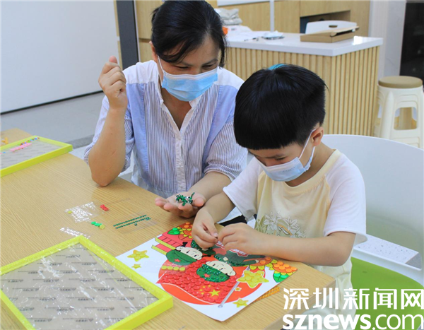 最后一個(gè)來(lái)到的鄭權(quán)桸小朋友屬于“空降”,因?yàn)樗麤](méi)報(bào)上名。招募時(shí),15個(gè)名額很快就報(bào)滿了。但是鄭權(quán)桸很想?yún)⒓舆@個(gè)活動(dòng),媽媽就帶著他來(lái)試試,現(xiàn)場(chǎng)社工也很歡迎他的加入。鄭權(quán)桸小朋友全神貫注投入到畫(huà)作中,把每個(gè)紐扣都放在最佳位置,直到把全部紐扣貼完。他是最后一個(gè)來(lái),也是最后一個(gè)走的。