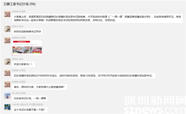 讀特客戶端·深圳新聞網(wǎng)2022年6月20日訊(記者 吳艷 通訊員 韓珊)為落實基層黨建“標準+質(zhì)量+示范”要求,推動黨建業(yè)務(wù)工作深度融合,幫助基層黨組織找準黨建品牌創(chuàng)建的切入點和實施路徑,6月16日,羅湖區(qū)委衛(wèi)生健康工委圍繞基層黨建的熱點難點問題,舉辦了一場以交流激發(fā)思考的“書記沙龍”,區(qū)婦保院婦女保健科書記陳艷梅線上分享黨建品牌創(chuàng)建經(jīng)驗和服務(wù)群眾的心得體會,68名支部書記熱烈探討,共同交流提高。