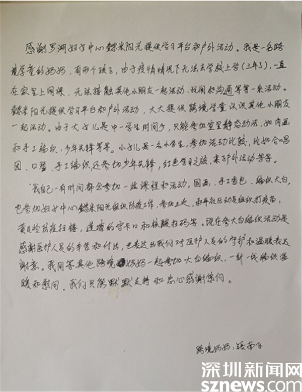 讀特客戶端·深圳新聞網(wǎng)2022年8月25日訊(記者 李慧 通訊員 黃霞)疫情發(fā)生以來(lái),跨境兒童的家庭生活也受到頗多的關(guān)注,張南飛便是羅湖區(qū)其中一名普通的跨境學(xué)童媽媽,她的勵(lì)志故事鼓舞著身邊許多人。