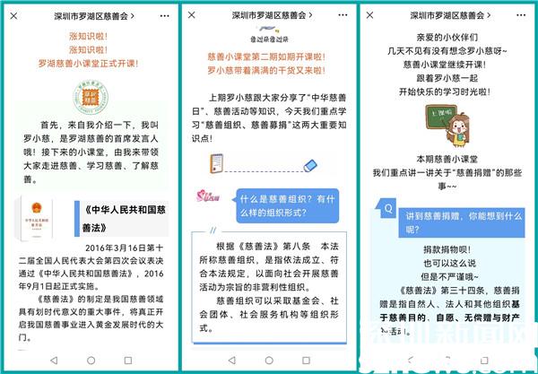 為進(jìn)一步宣傳《慈善法》,普及慈善知識,羅湖區(qū)慈善會通過“深圳市羅湖區(qū)慈善會”微信公眾號推出三期“慈善知識知多少”宣傳,針對慈善活動、慈善組織、慈善捐贈、慈善募捐、稅收優(yōu)惠等內(nèi)容,向社會公眾普及慈善知識,傳播慈善理念,培育公民慈善意識,規(guī)范慈善行為,倡導(dǎo)社會各界一起學(xué)善、知善、行善,弘揚(yáng)慈善文化,營造良好慈善氛圍。