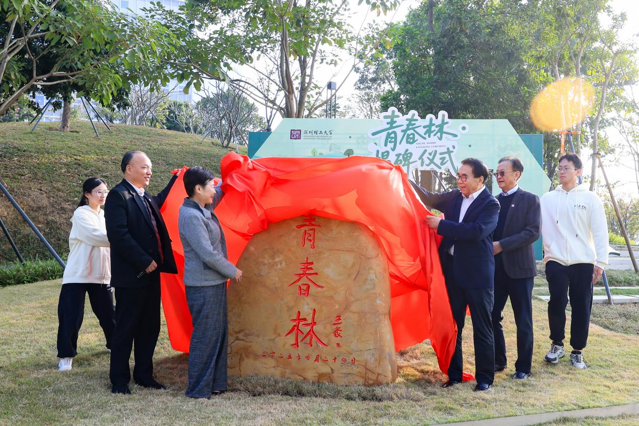當(dāng)天下午,林鄭月娥、白春禮還與深圳理工大學(xué)師生一起來(lái)到青春林,共同為王蒙題寫的“青春林”紀(jì)念石揭碑,并攜手種下一株洋紫荊樹苗,為青春林再添新綠。