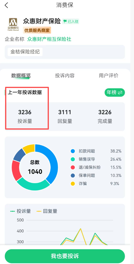 眾惠財(cái)險(xiǎn)在相關(guān)平臺被投訴