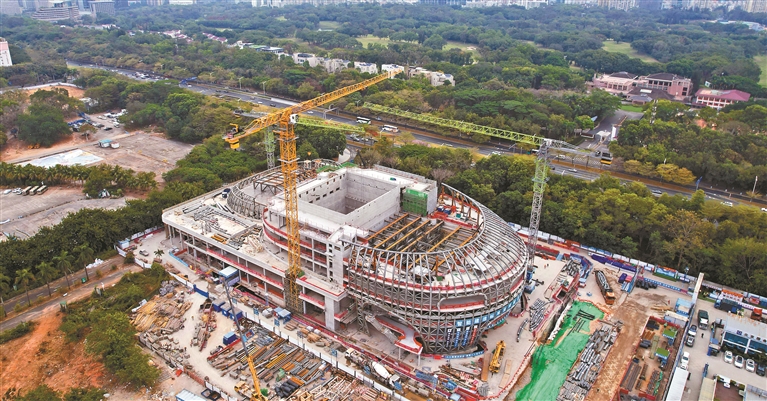 深圳新聞網2026年2月5日訊 近日,記者在現場看到,國際演藝中心主體結構工程建設過半。該中心坐落在香蜜湖核心區(qū)域,由世界知名建筑設計事務所Ennead操刀設計,總建筑面積達7.3萬平方米,將建設1800座夢劇場(含樂池)、600座多功能演藝空間、排練廳文化配套、藝術大廳等。