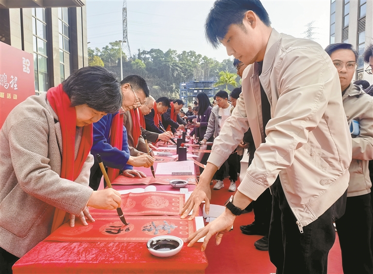 深圳新聞網(wǎng)2026年2月5日訊(深圳報業(yè)集團記者 劉鋼)近日,位于龍華區(qū)大浪街道的深圳市國樂科技園里墨香裊裊,一場以“春聯(lián)啟鴻運,科技見鵬程”為主題的2026年迎新春書畫名家送春聯(lián)活動在此舉行。該活動在大浪街道辦事處的指導(dǎo)下,由深圳市書畫家協(xié)會和深圳市國樂科技園聯(lián)合主辦,當天特邀18位書法名家現(xiàn)場揮毫潑墨,為園區(qū)企業(yè)和周邊市民送上年味禮物。