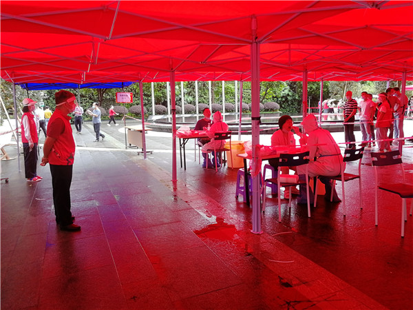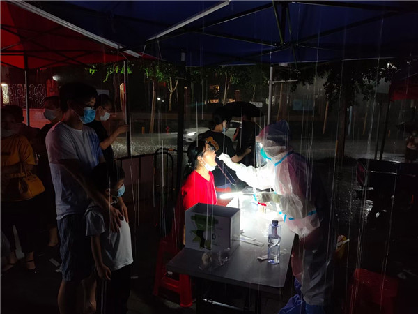 6月22日一早,深圳雷雨交加,深圳市氣象臺(tái)2021年06月22日07時(shí)10分在多個(gè)區(qū)域發(fā)布暴雨紅色預(yù)警,羅湖也包括其中。有那么一群人,嚴(yán)陣以待、逆雨迎風(fēng),堅(jiān)守在抗疫一線,當(dāng)天,記者來到各核酸檢測點(diǎn),醫(yī)護(hù)人員和社區(qū)義工們?nèi)匀幻爸L(fēng)雨,堅(jiān)守在核酸采集的崗位上。