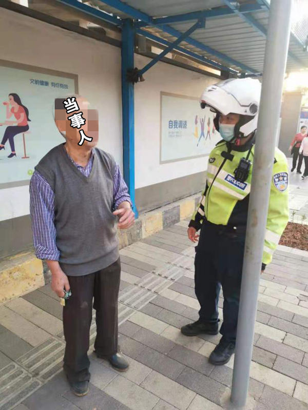1月29日下午,羅湖交警大隊東湖中隊民警鐘文輝帶領隊員在太白路太白充電樁巡邏時,看見一位六旬老人在路口不斷徘徊,老人手中握著水瓶,緊皺眉頭,急得滿臉都是汗。
