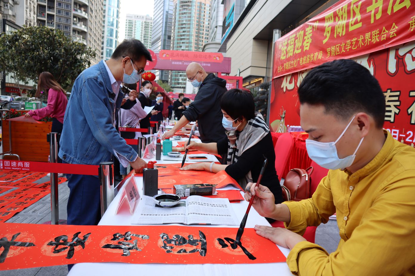 由羅湖區(qū)文化廣電旅游體育局、羅湖區(qū)文學藝術界聯(lián)合會主辦,羅湖區(qū)書法家協(xié)會承辦,國速地產協(xié)辦的“送福迎春”——羅湖區(qū)書法家書贈春聯(lián)活動2月1日在羅湖區(qū)寶安南路國速大廈南廣場舉行。