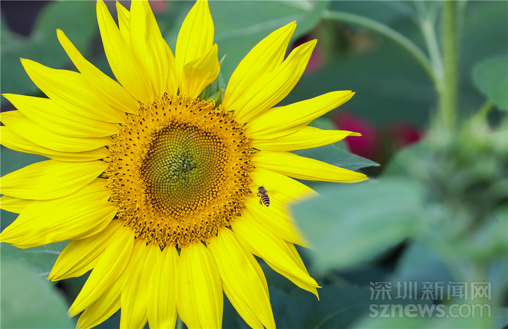 勤勞的蜜蜂腳上包裹著采集的花粉準備離去