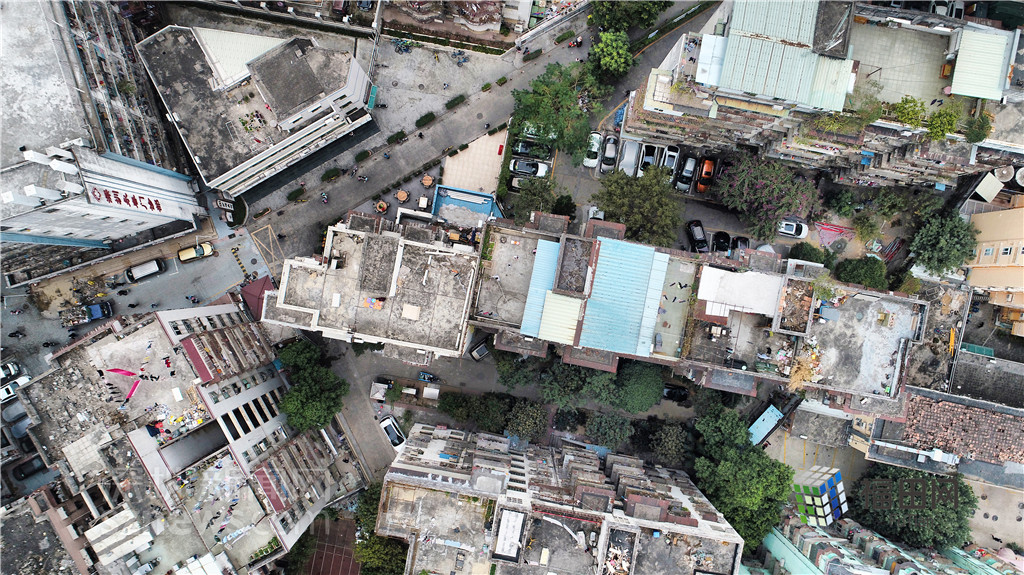 從無人機視野中,村內(nèi)房屋雖然擁擠,但綠化很好。