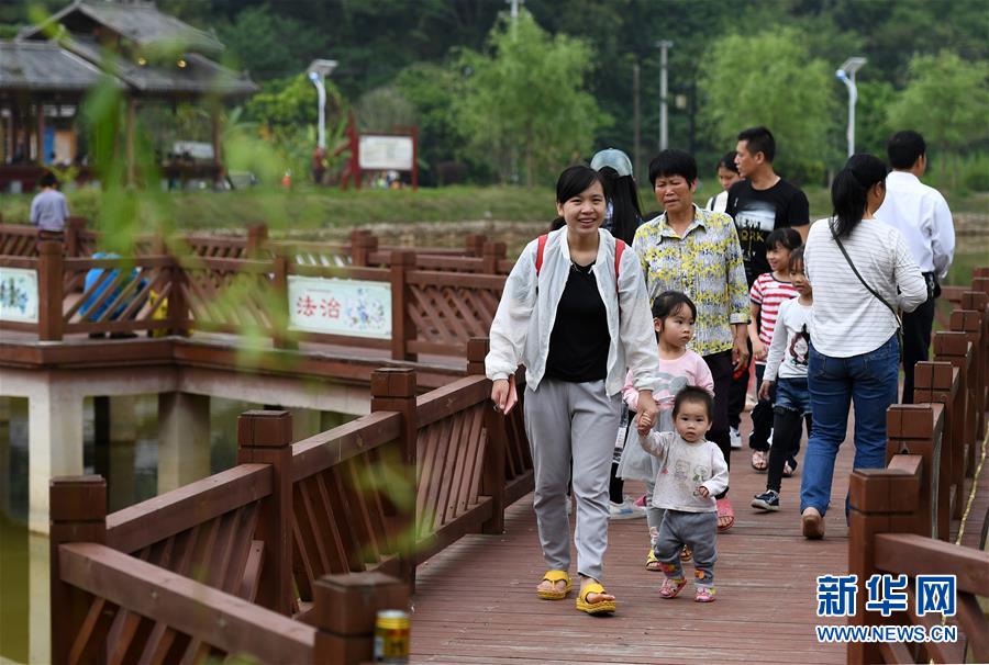 4月19日,游客在廣西南寧市青秀區(qū)南陽(yáng)鎮(zhèn)施厚村古岳坡參觀(guān)游覽。今年“壯族三月三”假期期間,不少市民游客前往鄉(xiāng)村旅游觀(guān)光,激發(fā)了一股鄉(xiāng)村旅游小熱潮?!皦炎迦氯笔菑V西壯族自治區(qū)確定的法定假期。新華社記者陸波岸 攝