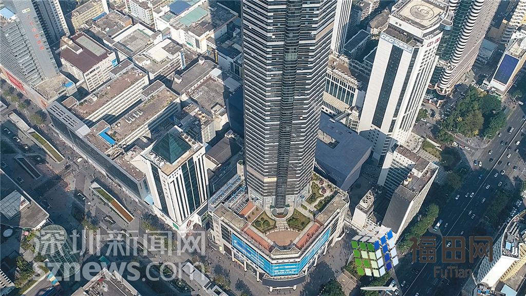 裙樓樓頂?shù)钠脚_(tái)花園和華強(qiáng)北步行街相得益彰。