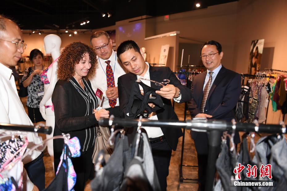 當(dāng)?shù)貢r(shí)間7月17日,深圳市內(nèi)衣行業(yè)協(xié)會(huì)在中美國(guó)際(美東)創(chuàng)業(yè)港——默特爾比奇市Waccoma Center舉行深圳內(nèi)衣產(chǎn)業(yè)推介會(huì)暨深圳內(nèi)衣美國(guó)展銷中心揭牌儀式。中美國(guó)際(美東)創(chuàng)業(yè)港聯(lián)合深圳市內(nèi)衣行業(yè)協(xié)會(huì)為深圳內(nèi)衣品牌進(jìn)駐美東市場(chǎng)搭建綠色通道和產(chǎn)業(yè)孵化平臺(tái),采用“時(shí)尚秀+靜態(tài)展”的形式,促進(jìn)中美內(nèi)衣文化和時(shí)尚的交流。圖為默特爾比奇市市長(zhǎng)布蘭達(dá)Brenda Bethune女士參觀深圳內(nèi)衣展廳。 中新社記者 陳文 攝
