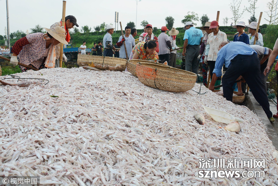 ?????2018年6月26日,江蘇省常州市嘉澤鎮(zhèn)捕撈村的漁民組織夏季捕撈,一網(wǎng)魚(yú)達(dá)五萬(wàn)余斤,以鰱魚(yú)為主,供應(yīng)市場(chǎng)需求。夏捕的魚(yú)價(jià)較平時(shí)有所上漲,漁民粗略估計(jì)可增收上萬(wàn)余元。