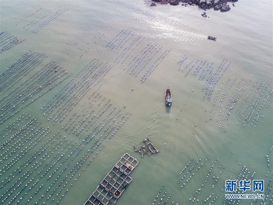 8月18日,南麂島馬祖岙海灣內(nèi),養(yǎng)殖戶(hù)乘船在貽貝養(yǎng)殖區(qū)內(nèi)作業(yè)(無(wú)人機(jī)拍攝)。進(jìn)入8月,浙江省溫州市平陽(yáng)縣南麂鎮(zhèn)海域上大片的大黃魚(yú)、貽貝等特色海產(chǎn)品養(yǎng)殖區(qū)域迎來(lái)豐收季節(jié),養(yǎng)殖戶(hù)們駕駛漁船在養(yǎng)殖區(qū)海域進(jìn)行打撈收獲,在碧海藍(lán)天下構(gòu)成了一幅“海上牧場(chǎng)”的美麗豐收景象。近年來(lái),南麂鎮(zhèn)政府引導(dǎo)漁民養(yǎng)殖戶(hù)充分發(fā)揮“靠海吃?!钡馁Y源優(yōu)勢(shì),大力發(fā)展海洋養(yǎng)殖經(jīng)濟(jì)和海島旅游經(jīng)濟(jì),實(shí)現(xiàn)了南麂由“生態(tài)美”向“產(chǎn)業(yè)美”,“產(chǎn)業(yè)美”向“經(jīng)濟(jì)美”的轉(zhuǎn)變。同時(shí)該鎮(zhèn)堅(jiān)持以大黃魚(yú)、貽貝等為特色產(chǎn)業(yè)支撐,精準(zhǔn)發(fā)展高效海洋養(yǎng)殖業(yè),重點(diǎn)培養(yǎng)一批新型職業(yè)漁民,依靠專(zhuān)業(yè)技術(shù)支持,實(shí)現(xiàn)深海仿生養(yǎng)殖,讓好生態(tài)造就好品質(zhì),重點(diǎn)打造南麂養(yǎng)殖品牌,組建營(yíng)銷(xiāo)網(wǎng)絡(luò),拓展特色海產(chǎn)品市場(chǎng)。新華社記者 徐昱攝