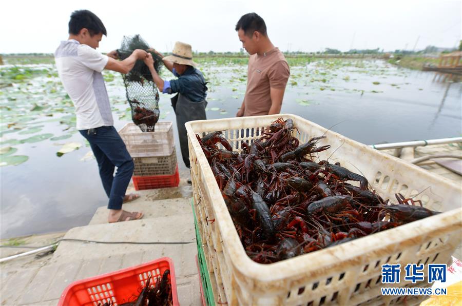 5月23日,在南昌市新建區(qū)象山鎮(zhèn)河林村,當(dāng)?shù)剞r(nóng)戶(hù)將捕獲的小龍蝦搬運(yùn)上岸裝箱。近日,江西省南昌市新建區(qū)1.7萬(wàn)畝水域養(yǎng)殖小龍蝦喜獲豐收,當(dāng)?shù)剞r(nóng)戶(hù)紛紛將鮮活的小龍蝦捕獲上岸,裝箱外銷(xiāo)。據(jù)了解,近年來(lái),南昌市新建區(qū)發(fā)揮轄區(qū)內(nèi)河道縱橫,水田眾多的優(yōu)勢(shì),支持鼓勵(lì)農(nóng)戶(hù)發(fā)展小龍蝦養(yǎng)殖業(yè),為當(dāng)?shù)剞r(nóng)戶(hù)開(kāi)辟了一條特色養(yǎng)殖的致富之路。新華社記者彭昭之 攝