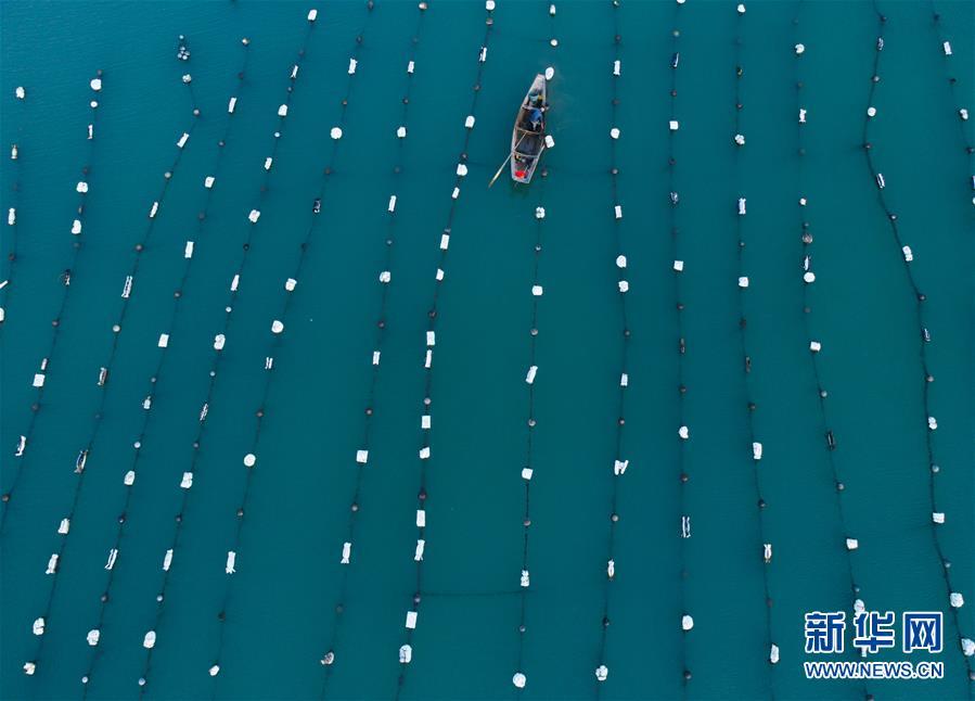 8月18日,南麂島海域的“海上牧場”養(yǎng)殖區(qū)內(nèi),漁民準備進行養(yǎng)殖作業(yè)(無人機拍攝)。進入8月,浙江省溫州市平陽縣南麂鎮(zhèn)海域上大片的大黃魚、貽貝等特色海產(chǎn)品養(yǎng)殖區(qū)域迎來豐收季節(jié),養(yǎng)殖戶們駕駛漁船在養(yǎng)殖區(qū)海域進行打撈收獲,在碧海藍天下構(gòu)成了一幅“海上牧場”的美麗豐收景象。近年來,南麂鎮(zhèn)政府引導(dǎo)漁民養(yǎng)殖戶充分發(fā)揮“靠海吃?!钡馁Y源優(yōu)勢,大力發(fā)展海洋養(yǎng)殖經(jīng)濟和海島旅游經(jīng)濟,實現(xiàn)了南麂由“生態(tài)美”向“產(chǎn)業(yè)美”,“產(chǎn)業(yè)美”向“經(jīng)濟美”的轉(zhuǎn)變。同時該鎮(zhèn)堅持以大黃魚、貽貝等為特色產(chǎn)業(yè)支撐,精準發(fā)展高效海洋養(yǎng)殖業(yè),重點培養(yǎng)一批新型職業(yè)漁民,依靠專業(yè)技術(shù)支持,實現(xiàn)深海仿生養(yǎng)殖,讓好生態(tài)造就好品質(zhì),重點打造南麂養(yǎng)殖品牌,組建營銷網(wǎng)絡(luò),拓展特色海產(chǎn)品市場。新華社記者 徐昱攝