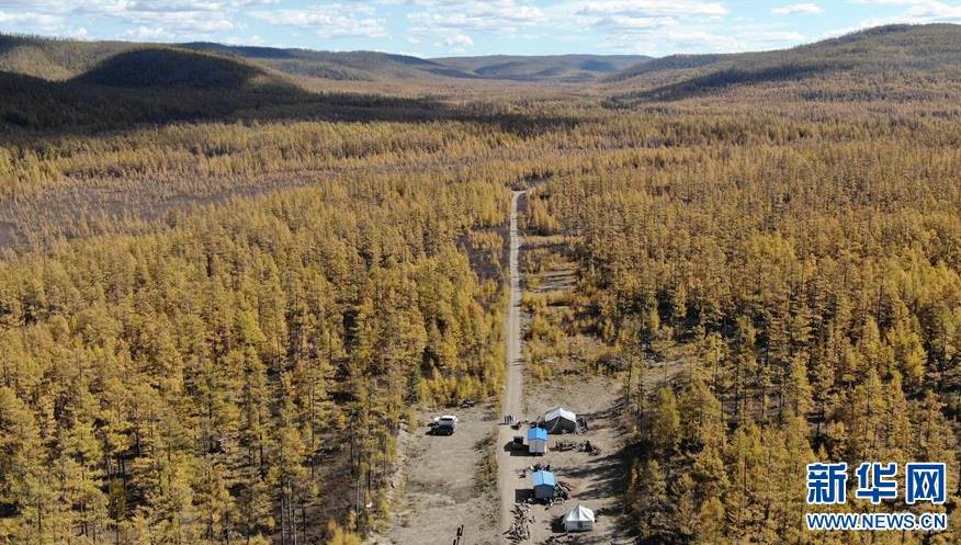 9月18日,在內(nèi)蒙古大興安嶺根河林業(yè)局約安里林場(chǎng),林場(chǎng)職工在河套取生活用水(無(wú)人機(jī)拍攝)。新華社記者李任滋攝