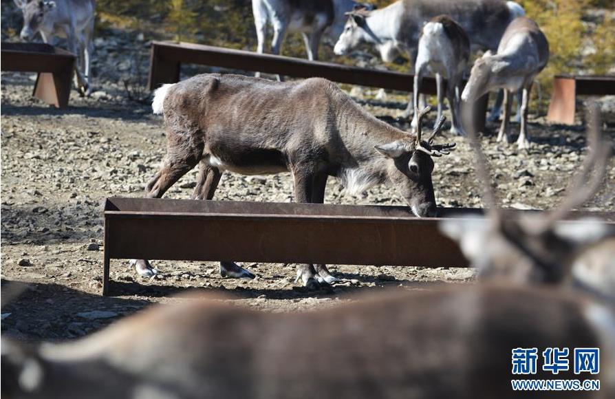 9月18日,在內(nèi)蒙古大興安嶺根河林業(yè)局約安里林場(chǎng),林場(chǎng)職工張國(guó)華要為馴鹿補(bǔ)充飼料。