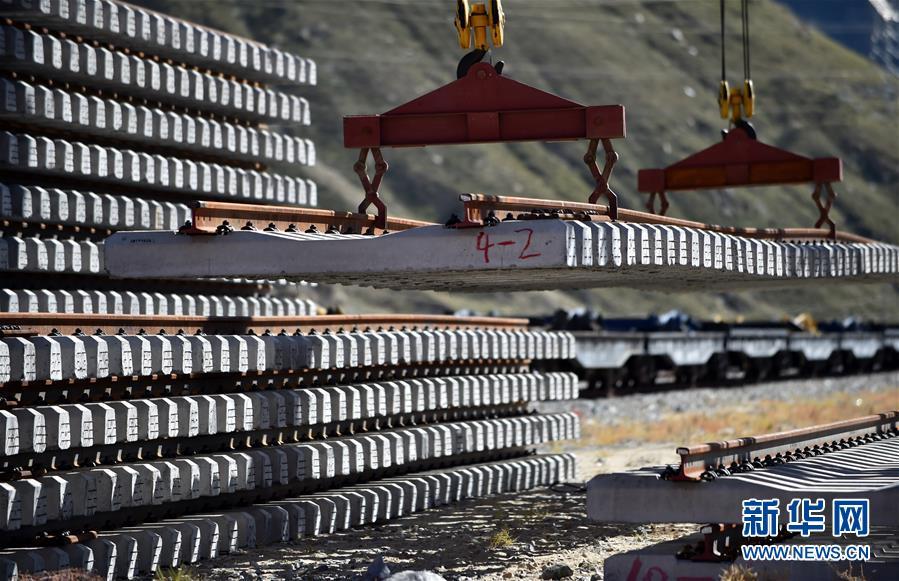 9月19日,在位于西藏拉薩曲水縣的中鐵十一局三公司協(xié)榮鋪架基地,用于架設(shè)川藏鐵路拉薩至林芝段(拉林鐵路)的首批軌排完成生產(chǎn)下線。據(jù)悉,拉林鐵路鋪軌任務(wù)全長400余公里,需要生產(chǎn)軌枕44萬多根。 新華社記者 覺果 攝