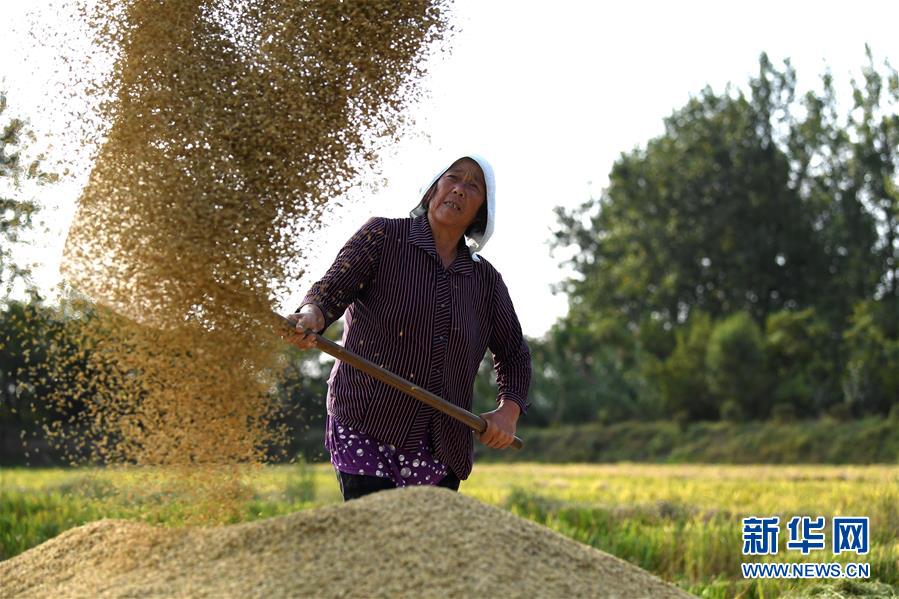 正值秋收時節(jié),安徽省鳳陽縣小崗村水稻陸續(xù)成熟,進入收割期。當(dāng)?shù)剞r(nóng)民利用晴好天氣搶收水稻,確保顆粒歸倉。