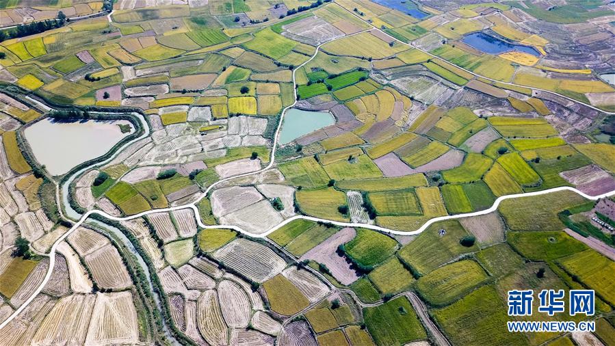 這是安徽鳳陽小崗村稻田景象(9月27日無人機(jī)拍攝)。 新華社記者 張端攝