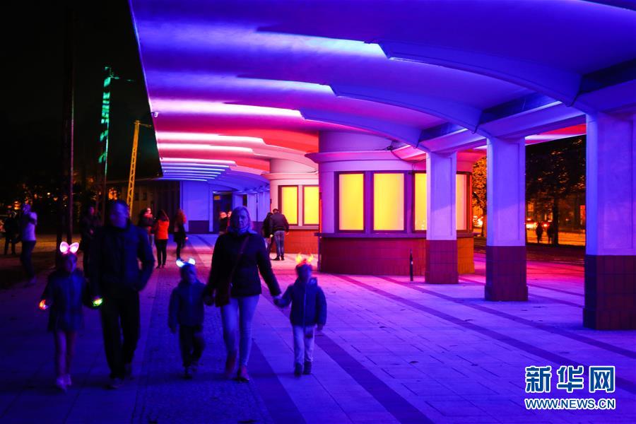 9月28日,游客在波蘭羅茲市中心舉辦的2018“舞動(dòng)”燈光節(jié)上游玩。2018“舞動(dòng)”燈光節(jié)于9月28日至30日在波蘭中部交通樞紐城市——羅茲市舉行,各式各樣的光影表演在這座城市的各個(gè)角落同時(shí)上演,組成了一場如夢(mèng)如幻的大型燈光秀。新華社記者陳序攝