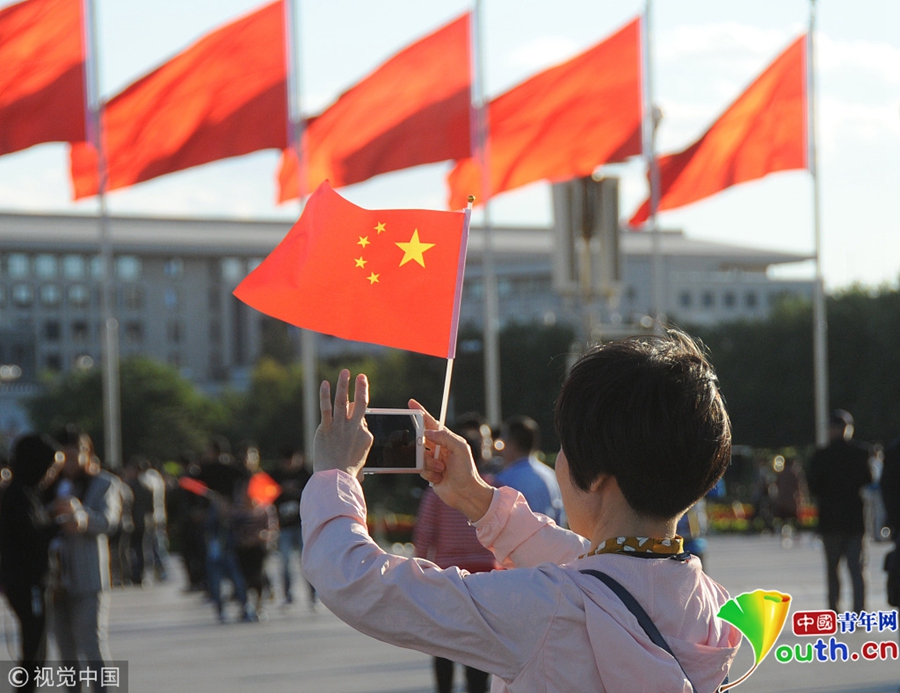 游客紛紛拿起手機(jī)、相機(jī)拍照留影充滿節(jié)日氣氛。