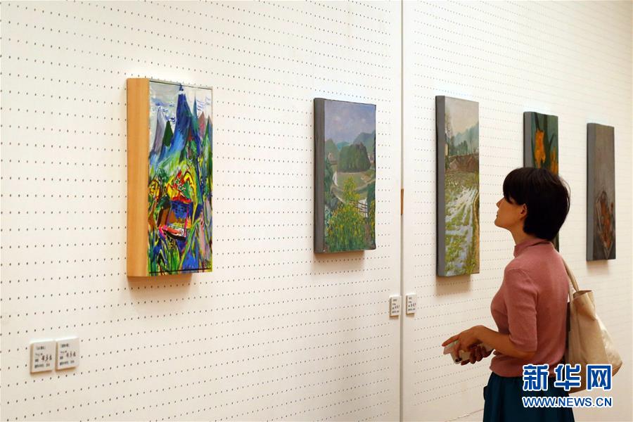 10月8日,在日本東京世田谷美術館,一位觀眾欣賞展出的中國藝術家畫作。 “現代中國藝術東京展”8日在日本東京世田谷美術館開幕。本次展覽共展出當代中國美術界具有代表性的30余幅畫作。 新華社記者王可佳攝