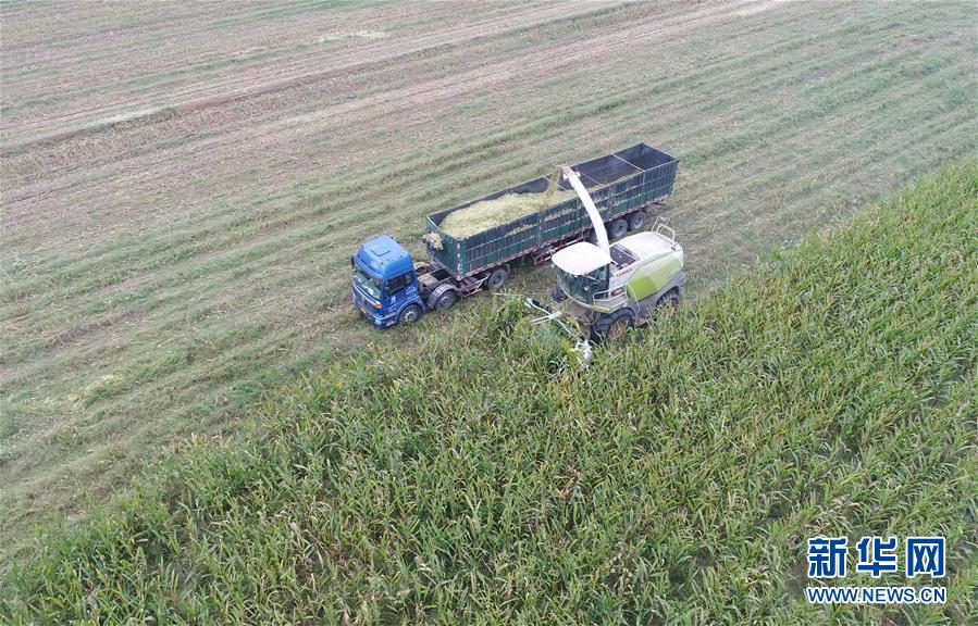 10月8日,河北故城縣里老鄉(xiāng)林場村農(nóng)民在收獲青貯玉米(無人機拍攝)。 近年來,河北省故城縣結合市場需求,通過“龍頭企業(yè)+基地+農(nóng)戶”的經(jīng)營模式,鼓勵引導農(nóng)民發(fā)展訂單式青貯玉米種植,不僅增加了種植戶收入,而且為養(yǎng)殖企業(yè)提供了優(yōu)質飼料。目前,故城縣已發(fā)展青貯玉米種植面積6萬余畝。 新華社記者 朱旭東 攝