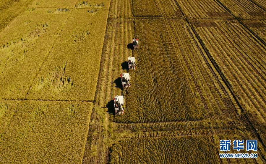 在吉林省吉林市萬昌鎮(zhèn),農(nóng)民駕駛收割機(jī)收割水稻(9月18日無人機(jī)拍攝)。 金秋十月,位于“黃金水稻帶”的吉林省喜迎豐收,全省1200多萬畝水稻陸續(xù)開鐮。 記者在吉林省水稻主產(chǎn)區(qū)走訪發(fā)現(xiàn),連年豐收的喜人圖景背后,蘊(yùn)藏著許多引人矚目的“時(shí)代之變”。 新華社記者 許暢 攝