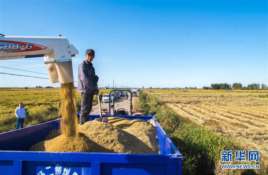 在吉林省吉林市一拉溪鎮(zhèn),農民在運糧車上整理收獲的水稻(9月17日攝)。 金秋十月,位于“黃金水稻帶”的吉林省喜迎豐收,全省1200多萬畝水稻陸續(xù)開鐮。 記者在吉林省水稻主產區(qū)走訪發(fā)現(xiàn),連年豐收的喜人圖景背后,蘊藏著許多引人矚目的“時代之變”。 新華社記者 許暢 攝