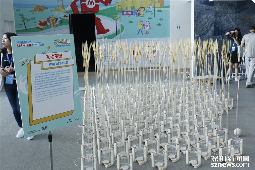 場館內(nèi)設(shè)計的互動麥田項目,當人走進時,棵棵麥稈便會搖動,整體形成陣陣麥浪