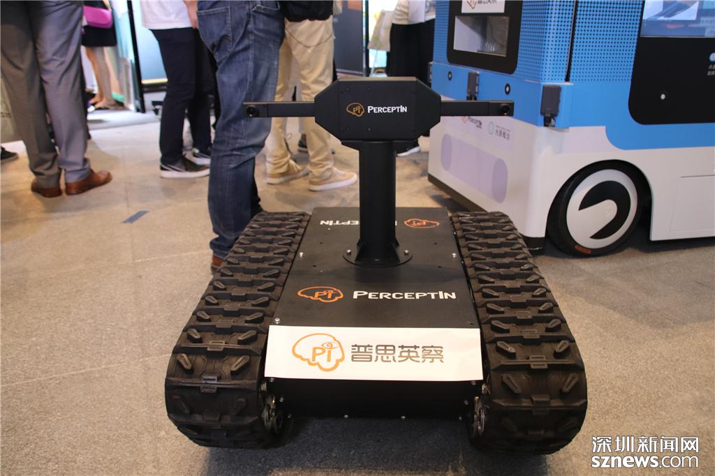 深圳創(chuàng)客周主會場展示的履帶式機器人