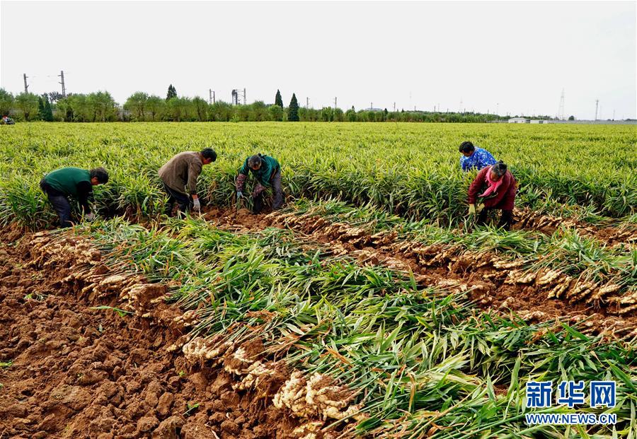 10月9日,秦皇島市撫寧區(qū)留守營鎮(zhèn)桑園村農(nóng)民在收獲生姜。 近年來,河北省秦皇島市撫寧區(qū)在農(nóng)業(yè)結(jié)構(gòu)調(diào)整過程中,引導(dǎo)當(dāng)?shù)剞r(nóng)民種植優(yōu)質(zhì)無公害生姜,并安排農(nóng)業(yè)技術(shù)員定期到田間指導(dǎo)農(nóng)民對(duì)生姜進(jìn)行標(biāo)準(zhǔn)化管理。據(jù)介紹,今年該縣生姜種植面積1萬多畝,預(yù)計(jì)產(chǎn)生姜5萬噸,種植戶每畝純收入達(dá)1萬多元。 新華社記者 楊世堯 攝