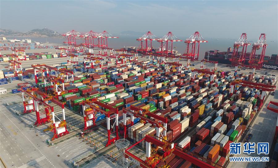這是上海洋山深水港四期自動化碼頭(7月25日無人機拍攝)。 位于杭州灣口外的上海洋山深水港區(qū),由大、小洋山等數(shù)十個島嶼組成,是中國首個在海島建設的港口。洋山港西北距上海市南匯蘆潮港約32公里,南至寧波北侖港約90公里,距國際航線僅45海里,是距上海最近的深水良港。 得益于洋山深水港的規(guī)劃建設和多年發(fā)展,目前上海港與全球214個國家和地區(qū)的500多個港口建立了集裝箱貨物貿(mào)易往來,國際班輪航線遍及全球各主要航區(qū)。2017年,上海港集裝箱吞吐量首次突破4000萬標準箱,完成4023.3萬標準箱,同比增長8.3%,均創(chuàng)歷史最高水平。 新華社記者 丁汀攝