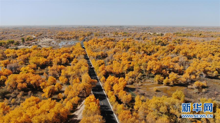 中國青年網(wǎng)北京10月9日電 2018年10月7日至8日,內蒙古自治區(qū)阿拉善盟額濟納旗,地處巴丹吉林沙漠。額濟納河兩岸壯觀的胡楊林堪稱大漠的一顆綠色明珠,每年深秋時節(jié)的第一場秋霜過后,大片的胡楊樹葉由綠變黃,一眼望去,陽光下金色的樹葉襯著湛藍的天空于風中婆娑起舞,鮮明的影調,亮麗的色彩,令人流連忘返。