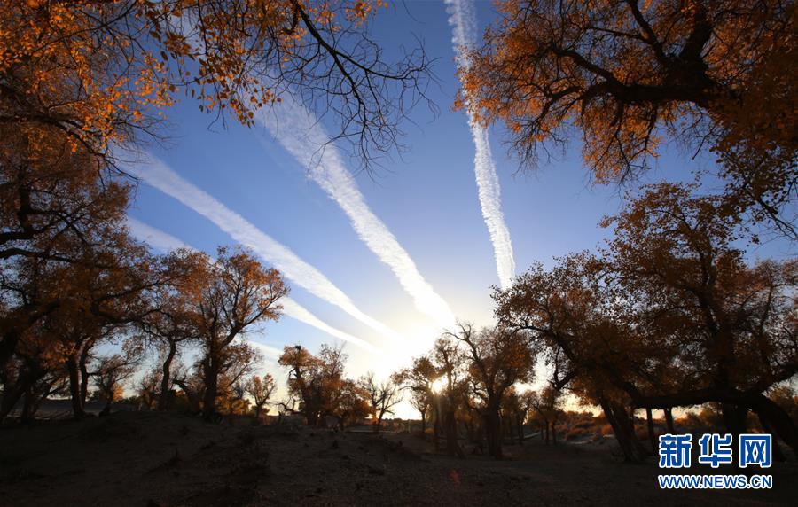 這是在內(nèi)蒙古自治區(qū)額濟(jì)納旗拍攝的胡楊林(10月10日攝)。 金秋時節(jié),內(nèi)蒙古自治區(qū)額濟(jì)納旗胡楊林如同披上金裝,成為大漠中的一抹亮色,吸引眾多中外游客前來觀賞游玩。 新華社記者安希雅攝
