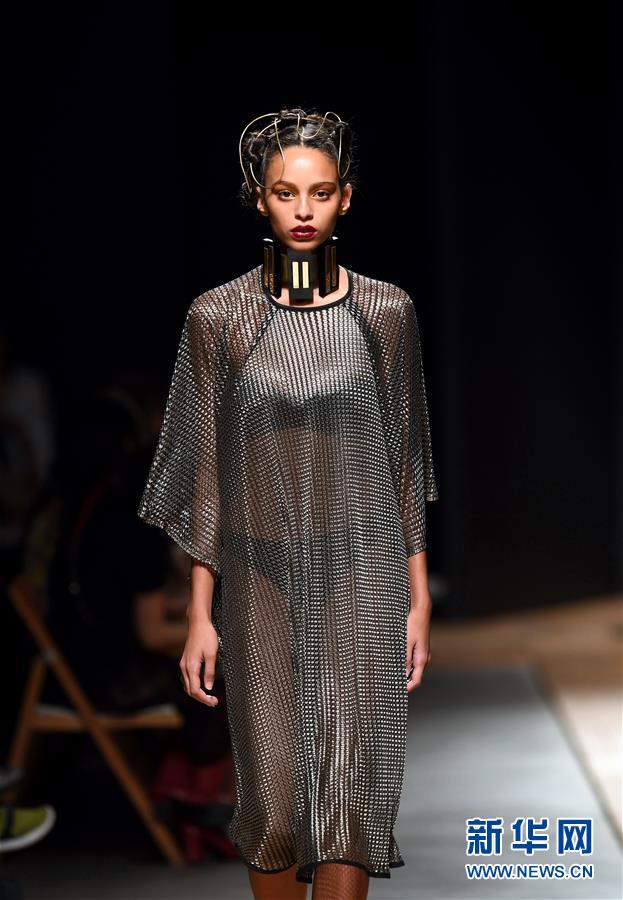 10月12日,在葡萄牙里斯本舉行的第51屆里斯本時裝周上,模特展示葡萄牙設(shè)計師瓦倫廷·夸雷斯馬設(shè)計的新款時裝。 第51屆里斯本時裝周于11日開幕。 新華社記者張立云攝