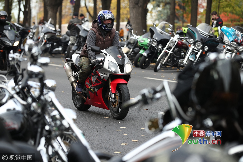 當(dāng)?shù)貢r(shí)間2018年10月13日,俄羅斯莫斯科,當(dāng)?shù)嘏e行摩托車游行。