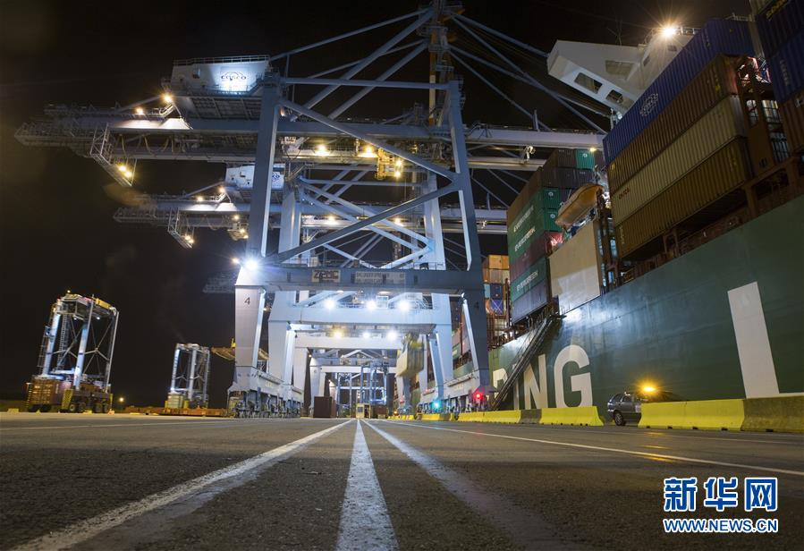 這是10月15日晚在比利時(shí)澤布呂赫港拍攝的集裝箱碼頭。新華社記者 葉平凡 攝
