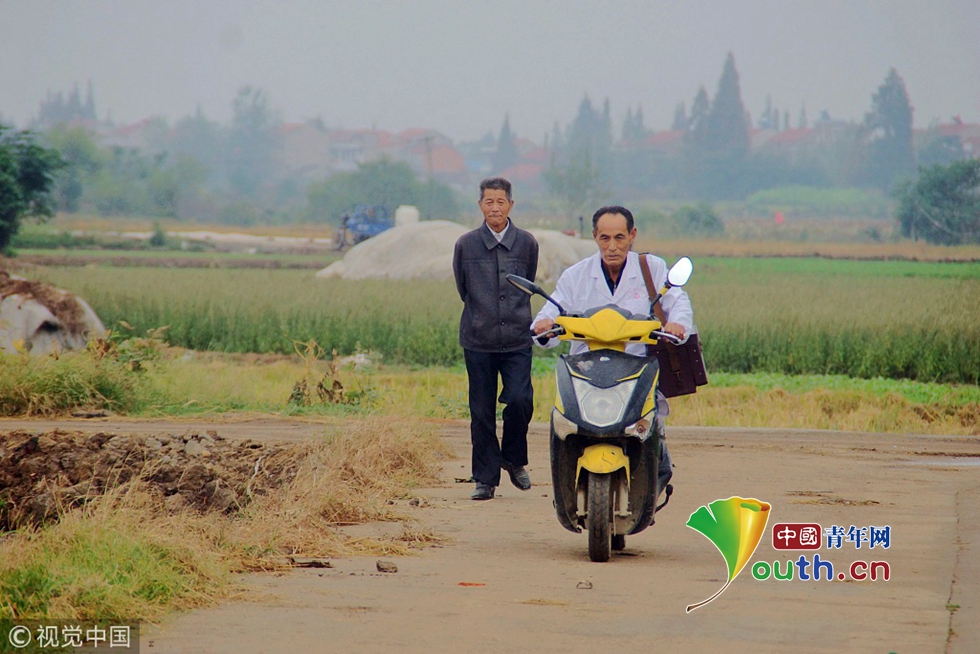 2018年9月26日,湖北孝感,云夢縣下辛店鎮(zhèn)白水湖村村醫(yī)陳年祥在村衛(wèi)生室為村民看病治病。對行動(dòng)不便的病人、老年人,就上門為村民看病問診。圖片作者:陳保忠/視覺中國