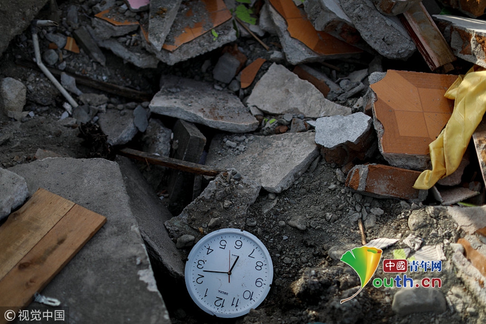 當(dāng)?shù)貢r(shí)間2018年10月7日,印尼帕盧,兩名男子從地震廢墟中找回他們?nèi)ナ栏改傅漠嬒?。圖片作者:JORGE SILVA/視覺中國(guó)