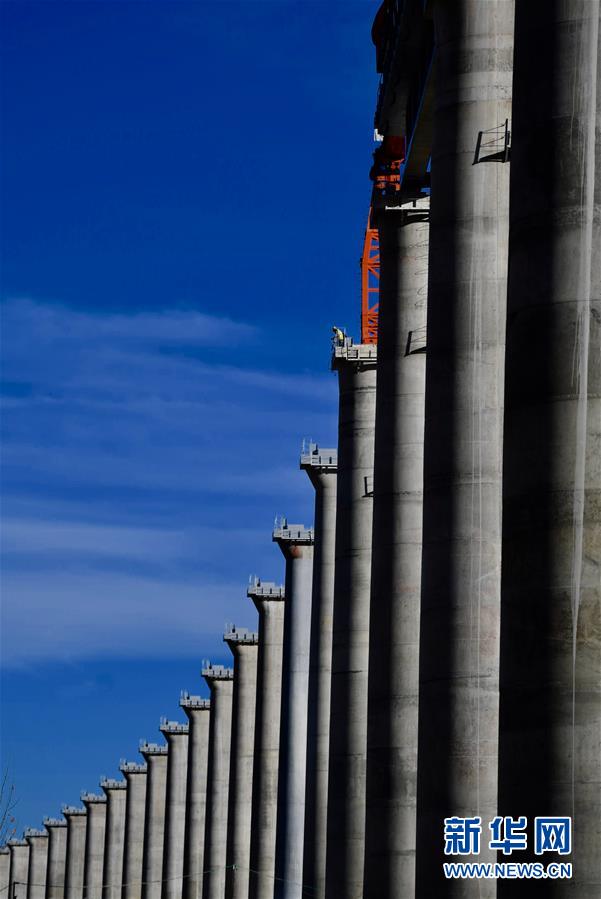 中鐵十一局的工人在川藏鐵路拉林段昌果特大橋進行鋪軌作業(yè)(10月16日攝)。 近日,川藏鐵路拉薩至林芝段昌果特大橋開始鋪設行軌排、架設梁片,標志著川藏鐵路拉林段正式進入鋪軌階段。 新華社記者 普布扎西 攝