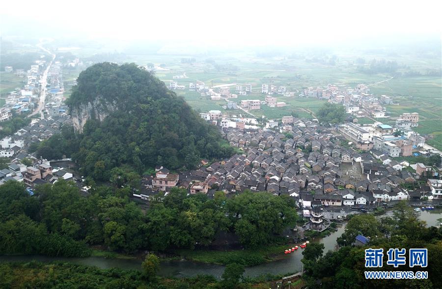 廣西富川瑤族自治縣朝東鎮(zhèn)秀水村連片民居(10月19日無人機(jī)拍攝)。 新華社記者 周華 攝
