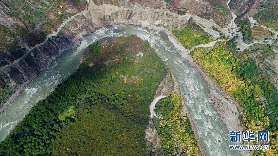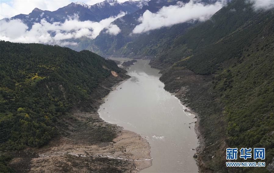 雅魯藏布江上的堰塞湖和堰塞體(10月18日攝)?!⌒氯A社記者 覺(jué)果攝