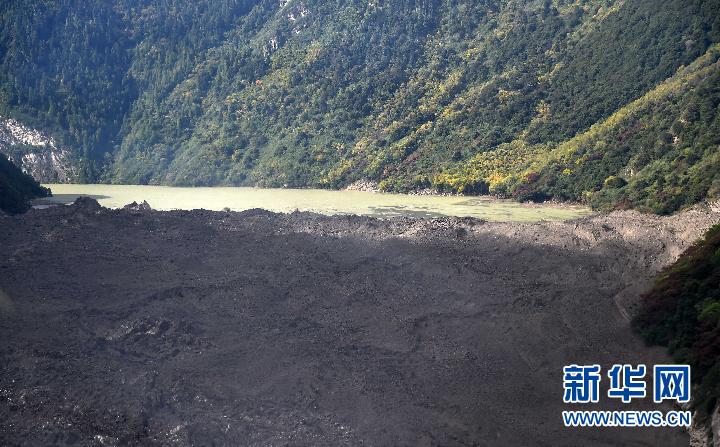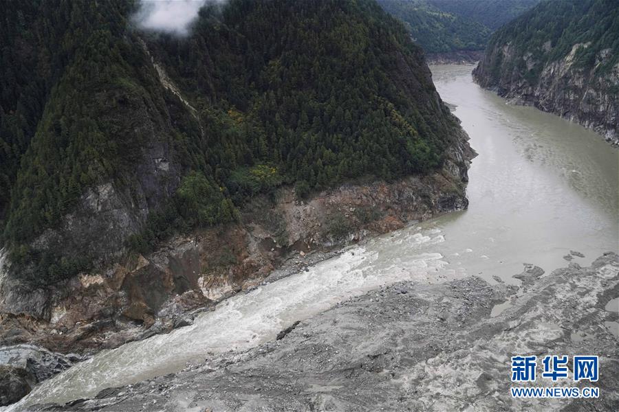 堰塞體現(xiàn)場(chǎng)圖片(10月18日攝)。 新華社記者 普布扎西攝