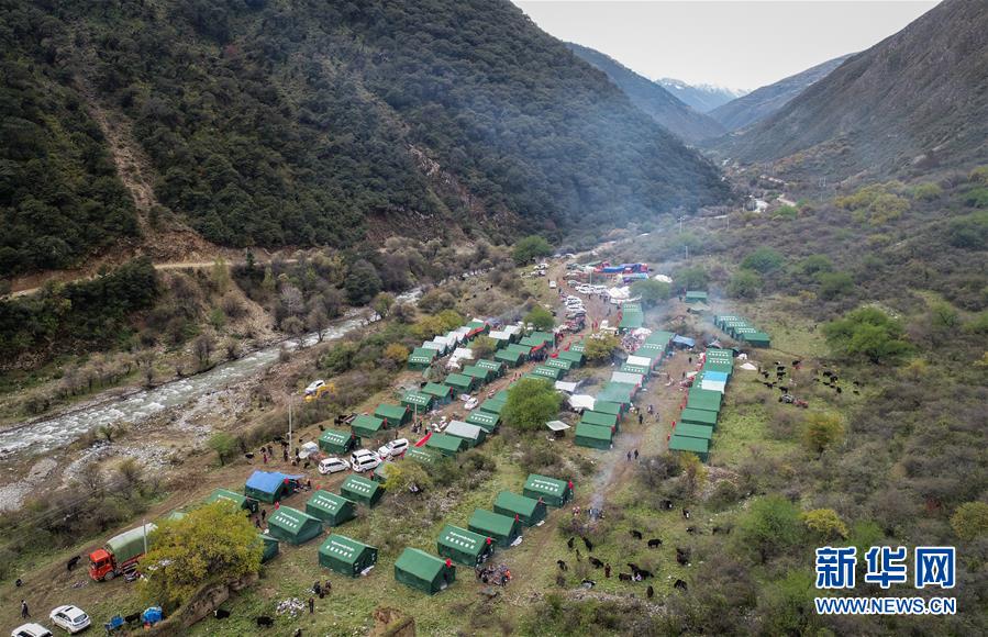 10月19日拍攝的在米林縣派鎮(zhèn)尼定村搭建的安置點(diǎn)。 記者從西藏自治區(qū)林芝加拉村雅魯藏布江堰塞湖災(zāi)情應(yīng)急搶險(xiǎn)工作第二場(chǎng)新聞發(fā)布會(huì)上獲悉,19日13時(shí)30分,雅魯藏布江米林縣堰塞體上游水位超過(guò)堰塞體,開(kāi)始自然過(guò)流,上游水位正在緩慢下降。目前,各項(xiàng)搶險(xiǎn)救援工作正在有序開(kāi)展。 新華社記者 覺(jué)果 攝