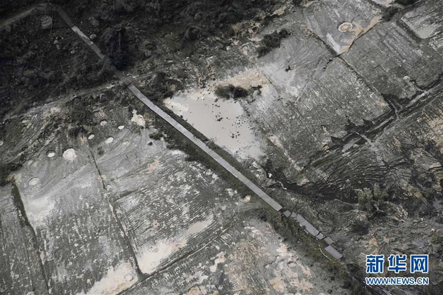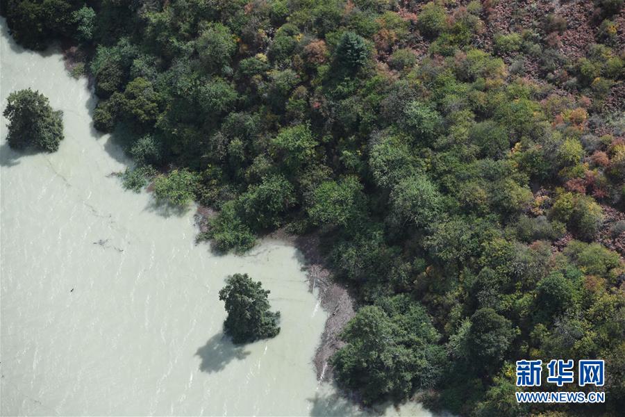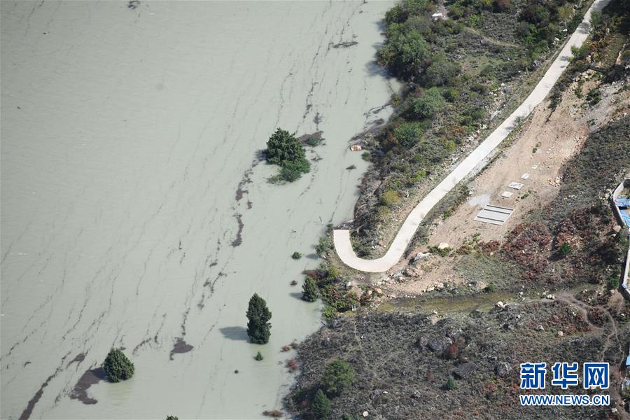 空中俯瞰通往加拉村已淹沒(méi)的公路(10月18日攝)。 新華社記者 普布扎西攝