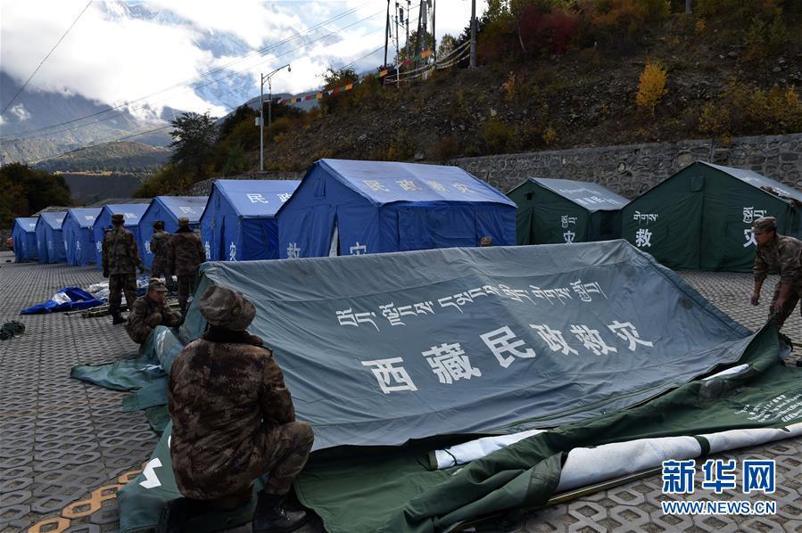10月19日,救援人員在米林縣派鎮(zhèn)尼定村搭建安置點(diǎn)。 記者從西藏自治區(qū)林芝加拉村雅魯藏布江堰塞湖災(zāi)情應(yīng)急搶險(xiǎn)工作第二場(chǎng)新聞發(fā)布會(huì)上獲悉,19日13時(shí)30分,雅魯藏布江米林縣堰塞體上游水位超過(guò)堰塞體,開(kāi)始自然過(guò)流,上游水位正在緩慢下降。目前,各項(xiàng)搶險(xiǎn)救援工作正在有序開(kāi)展。 新華社記者 覺(jué)果 攝