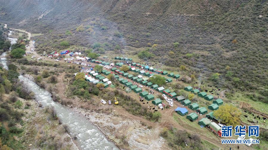 這是西藏昌都市江達縣波羅鄉(xiāng)熱多村臨時過渡安置點(10月14日無人機拍攝)。新華社記者劉東君攝